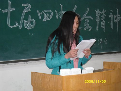 最后,林老师对本次学习交流会进行了总结性发言。她阐述了十七届四中全会的有关精神,强调了学生党员学习十七届四中全会精神的重要性,并就未来的发展对党员提出了希望和要求。