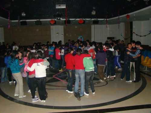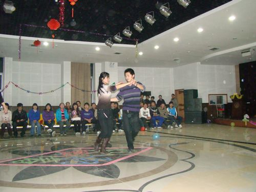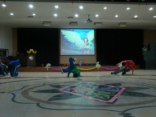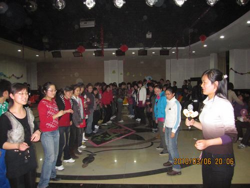 一段活力奔放的开场街舞,在点燃全场激情的同时,拉开了本次舞会的序幕;掌声未落,可爱又简单的兔子舞又拉动了现场的全民参与,使得现场气氛不断升温;紧接着,在一首首舞曲的伴奏下,在一束束灯光的映衬中,全场沉浸于舞林之中。大家在“炫舞扬春”的绚丽舞池中留下潇洒动感的舞姿的同时,更感受着舞蹈的魅力与激情,体验着节日的气息。此外,在舞会的中途还进行了趣味的抱团游戏和一帮一跨障碍游戏,充分调动了大家的热情与活力,现场气氛异常活跃;同时精彩的幸运抽奖活动更是让现场同学惊喜不断,随着本夜的“幸运之星”的诞生,本次舞会也在大家的掌声中圆满结束