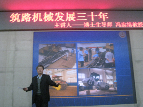 2010年3月17日晚,由冯忠绪教授主讲的主题为“筑路机械发展三十年”的专题讲座在行政楼学术报告厅隆重举行。工程机械学院党委副书记杨密侠主持报告。工程机械学院团委书记朱武威老师等出席了本次讲座。到会的还有学院各年级学生。