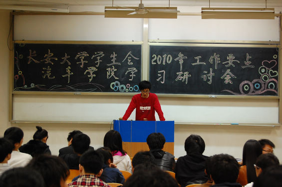 会议由汽车学院学生会主席郭炜主持。郭炜向参加会议的汽车学院学生会副部级以上干部宣读了《长安大学学生会2010年工作要点(讨论稿)》,就其中与汽车学院学生会工作密切相关的部分进行了强调与详细分析。《要点》在总结长安大学学生会指导思想、主要工作思路和任务的基础上,对其具体工作进行了部署和讨论。学生会工作专业化水平的提升作为学生会自身建设与服务同学的重点被提出,并在优化学生会组织机构建设,提高服务维权水平,加强学生会基层组织管理,组织学生会发展专题调研,探索高校干部培养机制等多个方面得到了具体说明。学生会通过多种途径引领思潮,积极营造优良校园文化的工作得到了充分的强调。加强宣传,努力拓宽交流合作平台也作为学生会工作的要点之一在会议中得到了广泛讨论。