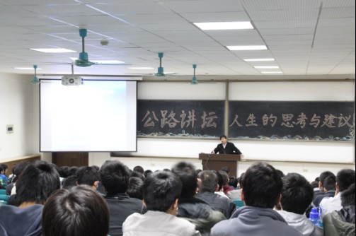 夏教授以“人生的思考与建议”为题,详细地阐述了“人生的意义”;“家庭的影响”;“学校教育”;“社会问题”;“爱情观”;“如何利用大学时光”以及“就业与走向社会”等精彩内容,使得整个报告过程中学生们的兴趣盎然。