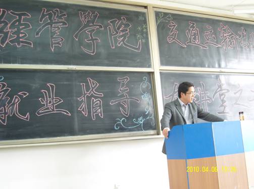 2010年4月6日 14:00点,经管学院07级运管专业“就业指导大讲堂”系列讲座之二——“面对就业与考研,我们该何去何从”在渭水校区修远3102教室举办。本次讲座邀请到了我院运管系系主任张周堂老师,讲座由陈伟老师主持。