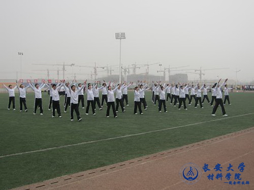 为了丰富同学们的校园生活,同时通过体育锻炼,激发同学们积极向上、团结奋斗的拼搏精神,3月30日中午,材料学院代表队在渭水校区东区足球场参加了长安大学第四届阳光体育运动广播体操比赛。材料学院团委书记何红娟老师、副书记杨树老师和09级辅导员林祖梅老师、吕志胜老师也亲临现场与同学们一起观看比赛。