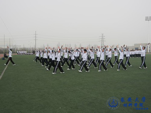 伴随着青春动听的音乐,各学院的参赛队员都精神饱满,充满朝气地进行了精彩的表演。材料学院代表队也出色地完成了整套的表演动作,大家身着统一服装,进出场整齐、迅速,协调优美的动作和饱满的热情更是给观众以美的视觉享受,充分展示了材料学院材子材女们独特的风采。另外,现场材料学院啦啦队也热情洋溢,加油的呐喊声与掌声夹杂在一起,化为比赛场上优美的旋律,为现场增添了靓丽的色彩。