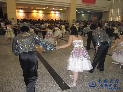 3月31日中午,材料学院代表队于渭水校区朝晖大学生活动中心参加了长安大学第四届阳光体育运动体育舞蹈比赛,各学院参赛队齐聚一堂,群英竞技,各展风采。材料学院团委副书记杨树老师在学生会成员的陪同下,亲临现场,为参赛同学加油助威。