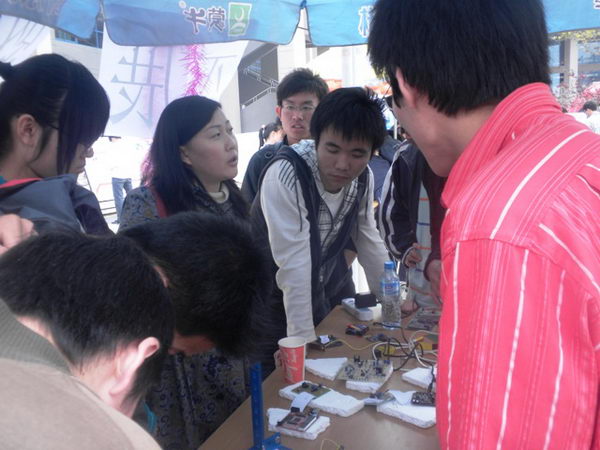 为激发广大同学对电子科技的兴趣和对电子知识的进一步了解,带领同学们学以致用,理论联系实际,营造具有电子类专业特色的科研气氛,2010年4月10日电控学院科技协会在渭水校区树惠园广场举办了电子魅力大型展演活动。