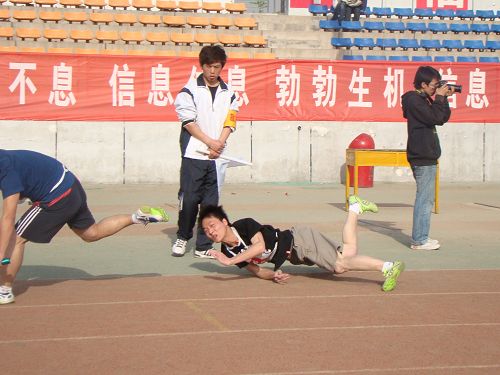 另外,在团体赛中,材料学院参赛队也创造了辉煌战绩。在20000米混合接力比赛中材料学院取得了第三名;在拔河比赛中,材料学院代表队顽强拼搏,取得总分第七的好成绩;在男子30人引体向上团体赛中,材料学院运动员用他们的坚持与毅力谱写了新的奇迹,取得第八名的好成绩;更可贵的是,在男子4x100接力赛中,材料学院运动员在意外摔倒,身体几处擦伤的情况下,仍坚持不懈,为材料学院赢得第八名的佳绩。