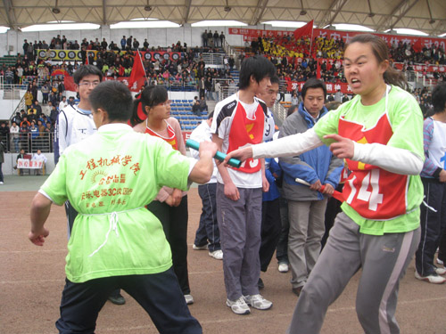 刚刚结束的2010年长安大学春季运动会上,我工程机械学院再创新高,取得男子团体第四、女子团体第九、总成绩第八的良好成绩,并同时获得体育道德风尚奖,使我们又向前迈了一步!