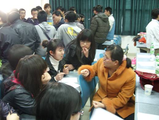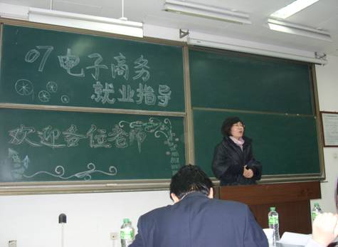 2010年4月14日 14:00时,我院在渭水校区明远1308教室举办07级电子商务专业“就业考研指导”第二场系列讲座。本次讲座邀请到我院电子商务专业李晓明等四位主要任课老师及07级辅导员陈伟老师,讲座由李晓明老师主持。