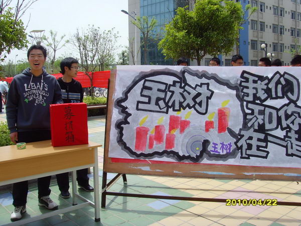 情系灾区,奉献爱心, 2010年4月22日中午 ,我院在树慧园广场举行了“玉树,我们在一起”捐款活动。院团委学生会、院大学生志愿者服务团内部成员参加了此次活动,每人都献上了一份爱心。