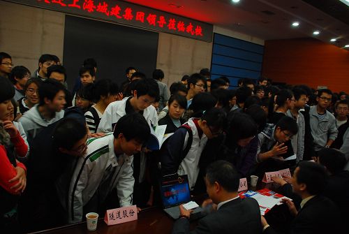 宣讲会上,一是播放上海城建集团宣传片;二是上海城建集团组织人事部徐蠡江部长详细介绍了集团主营业务、福利待遇、分配机制、人才需求专业、招聘职位、毕业生条件等问题;三是集团各子公司的负责人对现场同学们提出的问题逐一作了的解答。