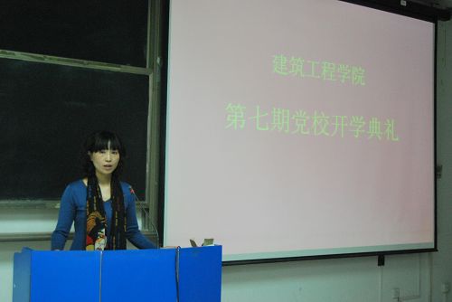 2010年4月27日晚19时,建工学院党校在渭水修远4204教室举行第七期入党积极分子培训班开学典礼。参加本次开学典礼的领导有校党校副校长宋琳老师、建工学院党委书记刘青云、党委副书记刘世良、正处级组织员王公盈及学办全体老师。开学典礼由王树莹老师主持。