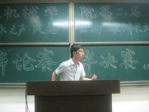 2010年5月9日晚,工程机械学院第二届渭水之声风起云涌雄辩长大辩论赛半决赛在明远3103教室成功举行。经过一番激烈的角逐,09级机制二班与工业设计班两支代表队胜利晋级。