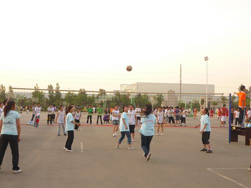 首轮比赛我院遇上了实力同样很强的环工学院。哨声一响,由我院运动员先发球,比赛正式拉开帷幕。身穿淡蓝色院服的六位女将,在场上奔跑着,不时还变换着防守位置。从发球垫球到扣球,每个动作都娴熟有力。展现出外院女生的风采。在上半场快结束时,我院运动员之一为了接住对手传来的一个低球,采取了前扑垫球的方法,不料一个踉跄失去了平衡,跪倒在地。场外观看比赛的同学都为她加油鼓励,随后她带伤继续参加比赛。