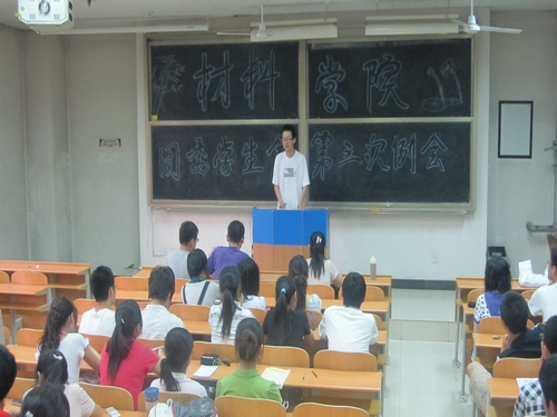 大会首先由学生会秘书处雷鸣宇同学发言。他简述了本次运动会中材料学院所取得的骄人成绩,并指出了在运动会中各部门能够尽职尽责,团结协作,充分体现出了良好的团队合作意识。接着,体育部王志磊同学结合自己工作谈了对运动会的感想。他具体的指出了在运动会工作过程中所反映出的一些不足之处,同时强调了自己在本次运动会中感受最真切的就是那一份真情与责任。