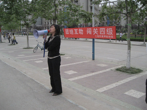 2010年5月9日晚,工程机械学院在渭水校区西区操场举办主题为“团结互助,闯关四级”的英语四级模拟考试班启动仪式,08级全体学生参加了此项活动。学院党委副书记杨密侠老师应邀参加并讲话,仪式由08级辅导员刘飞老师主持。