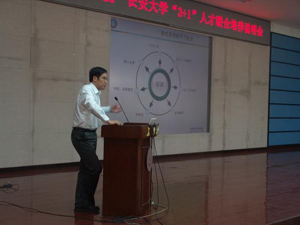 签约仪式由宋磊副书记主持。刘家乡老师首先致词,介绍了吉利集团的历史以及数年来取得的辉煌成就,并对校企双方互利互惠、共同开拓发展新道路的创举表达了真诚的祝愿。紧接着,肖润谋书记进行发言。肖书记着重向同学们介绍了吉利集团旗下的吉利汽车研究院,并对“3+1”教育模式作了简要阐述。“3+1”培养计划即大学本科前三年在校园参加学习,最后一年转赴吉利研究院参与学习与实际操作,并可获得学术、就业与经济等各方面的支持与奖励。随后,丁勇副院长走上讲台,作为长安大学的毕业生,丁勇首先向汽车学院的领导与老师们表达了作为子弟的满心感谢,随后向学弟学妹们介绍了“3+1”培养计划对本科生的各种益处,说明了什么类型的学生适宜参加此项计划,并告诫同学们要慎重决定、合理规划自己的职业前途。在多位嘉宾发言之后,签约仪式正式举行。丁勇副院长与余强院长共同签署了“3+1”人才联合培养计划协议,随后余强院长代表长安大学汽车学院向丁勇副院长赠送了礼品。