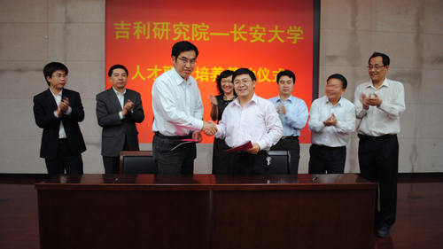 5月19日,吉利汽车研究院—长安大学汽车学院人才联合培养计划签约仪式在渭水校区行政楼学术报告厅隆重举行。吉利集团总裁助理、吉利汽车研究院常务副院长丁勇先生,吉利汽车研究院副院长吴成明先生,吉利汽车研究院总工程师潘之杰先生,吉利