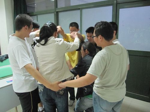 紧接着,进行了有趣的游戏互动环节。大家将写有自己烦心事的贴纸放在“河流”上,寓意“忧随水流去”;更有考验大家的团队意识的“解开千千结”游戏,使大家在游戏中感受到团队合作对于一个团体的重要作用。整个环节在欢乐协和的气氛进行,使大家身心放松。