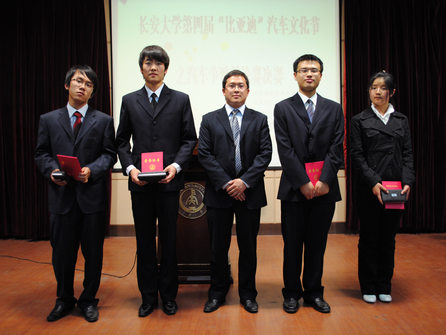 随后,比亚迪西安区域经理何爱先生为闭幕式致词,积极评价了本次汽车文化节的成果并对校企合作的新道路表达了信心。最后,汽车学院党委副书记张增社老师为本届汽车文化节致闭幕词。张增社副书记对比亚迪公司的大力支持表示感谢,对汽车学院各级师生的辛勤工作表示赞扬。汽车文化节已经顺利走过了三个年头,取得了丰硕的成果并在校内外产生了广泛的影响。今年,在校团委与比亚迪汽车的大力支持下,长安大学第四届“比亚迪”汽车文化节发展成为了一场高层次、大规模、持续时间长、参与人数多的校园盛会,并受到了《西安晚报》《华商报》等主流媒体的关注。通过以汽车为核心的一系列活动,汽车文化节搭建了一个汽车与文化相结合、汽车产业与文化产业相结合、人与车相结合的有机互动平台,为校园文化及汽车文化注入了活力与新意。在本届文化节取得圆满成功的同时,我们也期待今后的汽车文化节再创辉煌!