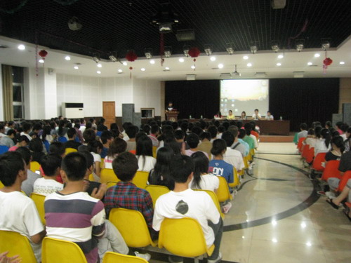 为了使在场的同学们更加了解大学生活的意义,高年级学生们从自身的日常生活与经历出发,引出他们所感受到的一些人生真谛,从而感染在座的同学。此外,他们也就自己的专业,向新生阐述了本专业的学习内容、学习方法和就业走向,为不少同学解答了心中困惑的问题。会上,新生们兴致勃勃的倾听,不时爆发出热烈的掌声,并把自己的问题写在纸条上呈递上去。高年级同学们也就大部分同学都存在的疑惑做了回答。