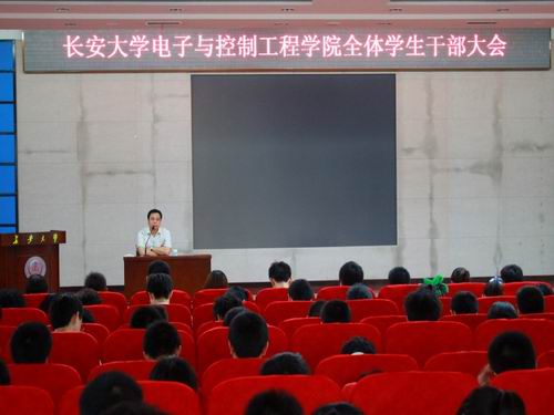 2010年6月29日 下午,电控学院在渭水校区行政楼会议中心召开了“电控学院全体学生干部大会暨期末诚信考试动员大会”,院团委书记张敏,辅导员李英举、王文超老师及渭水校区全体学生干部300余人参加此次大会。
