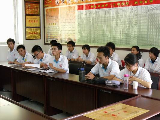 我实践队经过十一个小时的火车和一个多小时的汽车颠簸,终于抵达了辛家沟乡政府,并受到了辛家沟政府领导的热情招待。实践队到达后,由辛家沟镇党委薛书记,吴堡县交通局李教导主持了一个简短的见面介绍会议,会议介绍了辛家沟镇的基本情况和特点。领队郑益斌同学介绍了实践活动的日程安排。