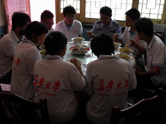 会后,在薛书记的热情带领下,邀请我们享受了一顿丰盛的午餐。饭后,一行人即到达辛家沟镇深砭焉村落脚,整顿休息。稍后,领队同学对我们一天来的行动做了详细的总结。今后十天的活动将以此为中心开展。
