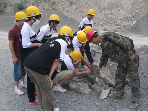 在对前一天的工作进行简要总结之后,7月15日,实践队又来到了该水泥生产公司的矿石开采基地,大家充分发扬艰苦奋斗的精神,亲身体验生产一线艰苦的工作环境;同时,现场工作人员也对开采的具体过程和应该注意的问题进行了简要介绍,并且向大家强调了安全生产和可持续发展对于企业的重要性,使大家受益匪浅。