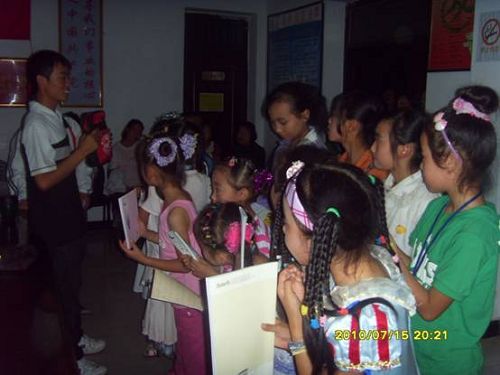 晚上六点参加朗诵和文艺表演的小朋友来到广场,服务团的成员帮他们画了妆,做好前期的准备工作。六点半朗诵比赛正式开始,活动在热烈的气氛中开展着,活动中孩子们还争先恐后地要展示个人才艺。围观的部分群众挤不进来,就站在门口观看。朗诵比赛结束后,进行了运动会、朗诵比赛、文艺表演的颁奖。