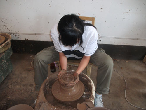 在对陈炉镇有了一定了解之后,7月17日,实践队又深入到各个陶瓷生产和培训基地,与当地的师傅们亲切交谈.在交流中,大家积极思考,向师傅们提出自己对于陶瓷生产工艺和流程方面的疑问,师傅们也认真作答,并且向大家强调了陶瓷文化的历史悠久和政府对于陶瓷发展中所起的重要作用.之后,师傅们给我们示范了陶瓷制作的过程,并且实践队也参与到陶瓷的制作当中,亲身体验陶瓷生产的每一个环节,使大家受益匪浅.