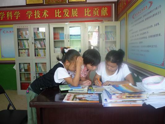 下午2:30,教学活动正式开始了。学生和老师大都集中在村委会的会议室中,教学内容和教学时间都有师生自定,所以学校的气氛显得轻松而愉快。老师们有的帮学生们通课本,有的在教解题;教学之余,“老师”和孩子们或乒乓或羽毛球,劳逸结合,玩的不亦乐乎。