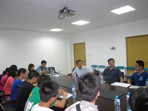 7月16日上午,在经过了实地考察后,体育系赴上海社会实践队与上海体育学院休闲体育系的有关师生进行了座谈交流。座谈会上,体育系团总支书记栾义峰老师首先就长安大学及长安大学体育系的整体情况向与会上海体育学院师生作了简单介绍。随后,栾老师还代表长安大学体育系与上海体育学院社会体育系教研室刘主任一起揭开了“长安大学暑期社会实践基地”的牌子。接着,两校师生就一些学术问题进行了自由交流,会场气氛十分活跃、融洽。