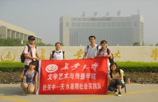 7月12日至7月22日,长安大学文学艺术与传播学院赴关中——天水经济区暑期社会实践团杨佳宁、史伟婷、常维、袁钰、李建、陈海涛等六名同学,赴关中——天水地区开展了为期十天的社会实践调研活动。