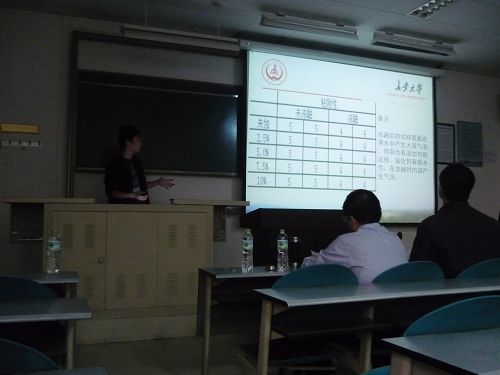 大会主要分为成果展示和答辩两个环节。首先由各立项团队代表对自己项目的进展情况进行展示,各位代表通过图文并茂的PPT以及精彩的语言陈述向大家展示了各自项目的具体研究安排、资金使用情况、下一步研究计划以及目前团队取得的阶段性成果,同时面对老师的提问,各位同学也以科学务实的态度作了精彩的答辩。在每位团队代表展示之后,现场老师与大家作了互动交流,老师首先对大家积极探索、认真求实的科学态度表示充分的肯定,并且也向大家指出了各实验项目中存在的不足和漏洞,同时也给大家提出了许多宝贵的建议,希望同学们能够努力学习,充分发挥自己的创新精神,进而不断提高自己的创造能力和实践能力。会场氛围异常浓厚。