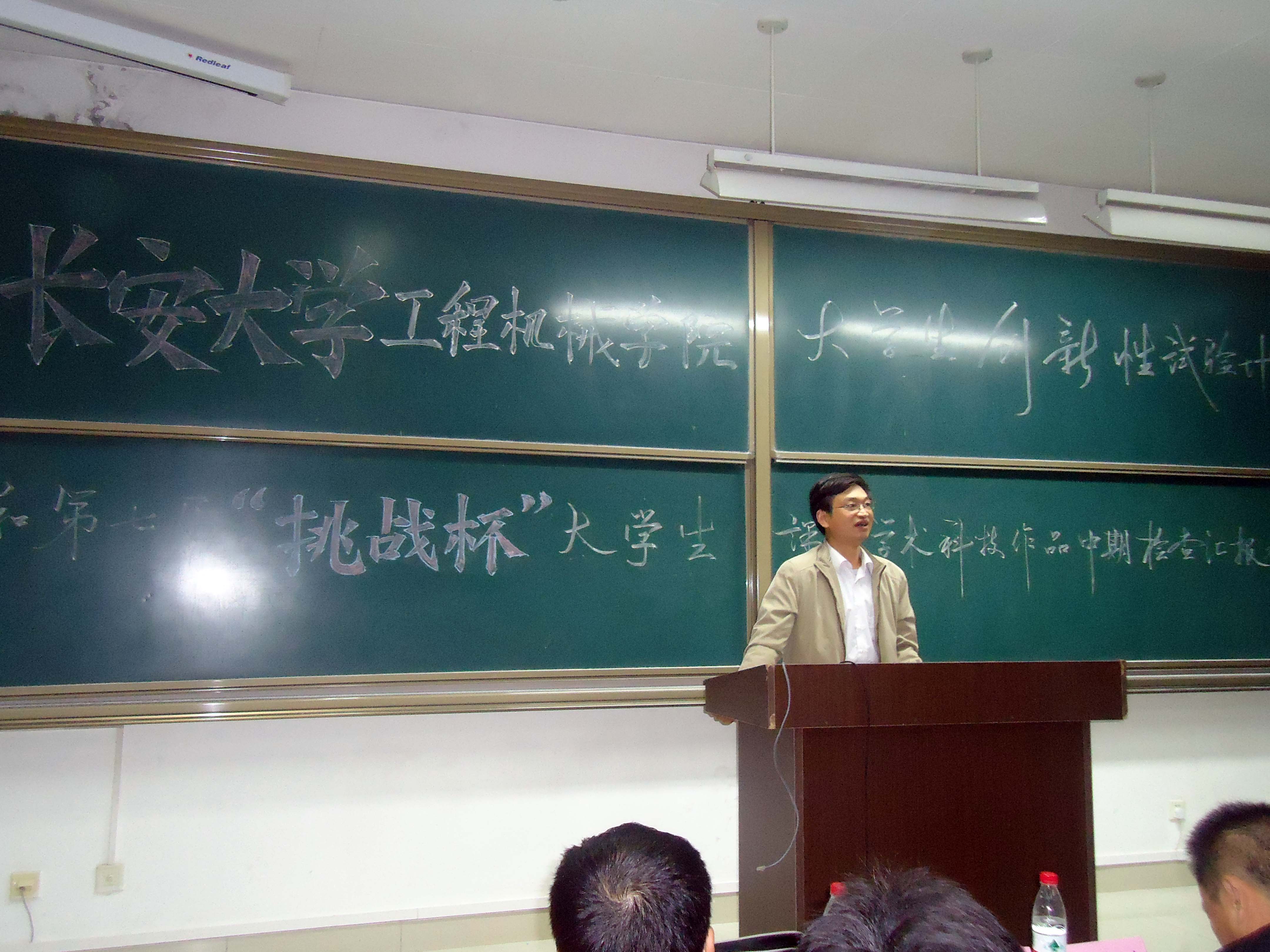 10月12日晚7:00,机械科协在明远3305教室举办了工程机械学院的大学生创新性实验计划和第七届“挑战杯”大学生课外学术科技作品竞赛立项资助项目中期检查汇报会。莅临本次大会现场的评委及嘉宾有工程机械学院副院长宋绪丁教授、机械系主任张伟社教授、机电系宋永刚教授、机制系蔡宗琰教授、运用系张志峰副教授、校团委办公室主任姬国斌老师、工程机械学院团委书记朱武威老师。此次共有14组代表队参加了本次汇报会。此外,工程机械学院09级、10级各班代表也积极参加了本次大会。