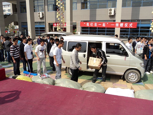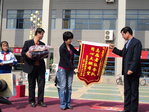 清风拂渭水,情动满长安。2010年10月15日中午,由共青团长安大学委员会主办,长安大学青年志愿者服务总队、工程机械学院青年志愿者服务队承办的“我们在一起”向西安市临潼区穆寨中心小学爱心捐赠仪式取得圆满成功。西安市临潼区穆寨中心小学李民校长、工程机械学院党委副书记曾力老师、长安大学团委社团与文艺部主任龚少博老师、工程机械学院学生办公室主任程宝虔老师、工程机械学院团委书记朱武威老师以及部分工程机械学院10级同学参加了此次捐赠仪式。