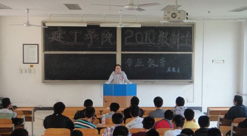 建工学院2010级新生专业教育座谈会于10月17日下午14:20在修远教学楼顺利举行。参加座谈会的领导老师有建工学院副院长吴涛、建筑工程实验室主任李晓光、混凝土与砌体结构教研室主任王步、学院老师李寓、黄华、李波、熊二刚、乔鹏、陈建峰、刑国华、黄永刚、杜强。2010级全体学生也参加了座谈会。