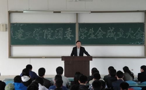 2010年10月22日中午12点30分,建工学院团委学生会换届大会在明远教学楼3201室顺利召开。出席本次大会的有长安大学建工学院党委副书记刘世良,学生工作办公室主任李险峰,团委副书记黄小乐,以及各年级辅导员。上届团委学生会代表和新一届团委学生会全体成员也参加了大会。会议由学生会秘书处秘书金超主持。