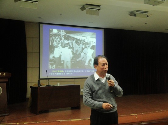 讲座中段里仁教授围绕“交通工具应各定其位,各尽其职,各得其所”的理念讲授了交通发展的历史、现状及前景;又以香港、新加坡、库里蒂巴、法兰克福以及“自行车王国”荷兰等地的交通体系为例,为我们介绍了“公交优先时代”、“理念一通海阔天空”的构想。段教授用亲切幽默的口吻生动地讲述了道路与城市交通的未来理念,会场多次响起雷鸣般的掌声。