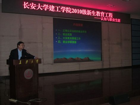2010年10月24日下午14:30,建工学院党委副书记刘世良在行政楼二楼报告厅为学院全体新生作了题为“2010级新生教育工程───认知与职业生涯”报告会。
