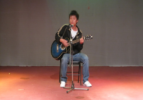 预审首先从歌曲类节目开始。研一党支部的同学们带来了一首小合唱《我的中国心》,激动人心的旋律引起了台下观众的强烈共鸣。接着是研一一班的女生小合唱《没时间》,可爱的歌曲风格和活泼的动作编排,博得了大家的阵阵掌声。之后研一行政管理班的藏族同学安珠尼玛带来一首藏族歌曲《天路》,优美如天籁的歌声带领我们进入纯净的青藏高原,台下同学的热情回应给预审晚会带来了一个小高潮。接着由同样来自研一行管班的雷军同学表演一首吉他弹唱《想说爱你不容易》,略带忧伤的旋律在他的手下缓缓流出,令人印象深刻。研一一班选送的女生对唱《羽毛》和研二行管班的男女对唱《倾国倾城》,或精灵可爱或深情优美;最后由研一行管班的魏若溪带来一首《谁料皇榜中状元》,歌声优美、身段舒展,虽然她没有带妆表演,但仍赢得了台下观众的热烈掌声。