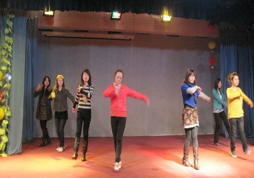 歌曲过后是语言类节目预审。研一二班的赵海全和李昭带来的相声《爱在囧途》,选取了当下网络和现实生活中素材,逗得大家阵阵捧腹大笑。而《牛郎织女新传》重新诠释经典神话故事,同学们的生动表演给大家带来了无限欢乐。之后诗朗诵和陕西快书一一登场,现场的气氛变得活跃起来。最后预审的是舞蹈类节目,主要有现代舞、印度舞和古典舞等。激越的旋律,欢快的舞步带给大家美的享受,台下传来阵阵欢呼声,将晚会推向最后的高潮。