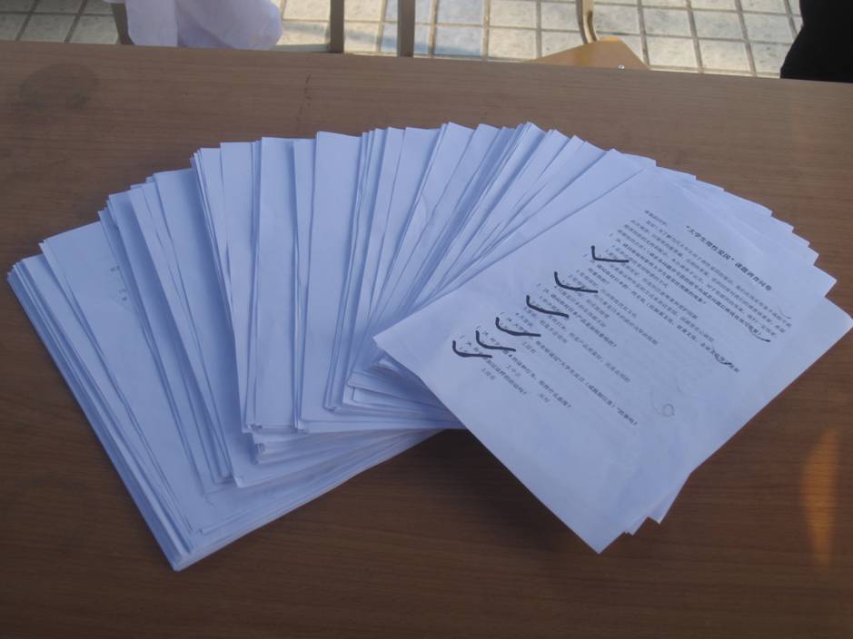 中午,土十的同学们兵分两路,分别来到东、西区食堂门口进行宣传及问卷调查活动。大家热情地向来往的同学发放宣传单,给同学们做理性爱国的介绍,并邀请他们做调查问卷。大家的宣传引起了在校同学的广泛注意,也让同学们对时事有了一个理性客观的认识。下午一点左右,活动顺利结束,大伙满载着调查成果,欣然而还。