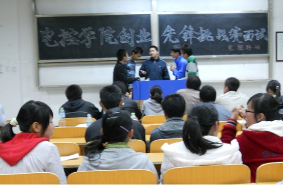 为给广大同学提供一个展示创业构想的平台,确实把我校创新与创业教育工程推向基层。10月29日晚7点,由电控学院举办的“创业先锋”挑战赛决赛于修远3101隆重举行。出席此次活动的有校科协副主席杨战雄、各兄弟学院科协主席、各参赛队伍以及电控科协全体成员。决赛由我院科协主席王兆伟主持。