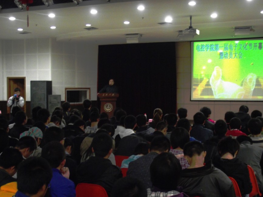 为拓宽广大同学的视野,突出我院教学特色,同时为即将到来的全国电子设计大赛做准备。10月31日晚,由电控学院举办的以“普及电子学知识,感受新科技魅力”为主题的首届电子文化节在朝晖大学生活动中心隆重开幕。出席此次会议的有我院党委副书记刘志超老师,09级辅导员郝天天老师,10级辅导员赵磊、王斌娟老师,各兄弟学院科协主席、以及我院部分学生骨干。大会由我院科协主席王兆伟同学主持。