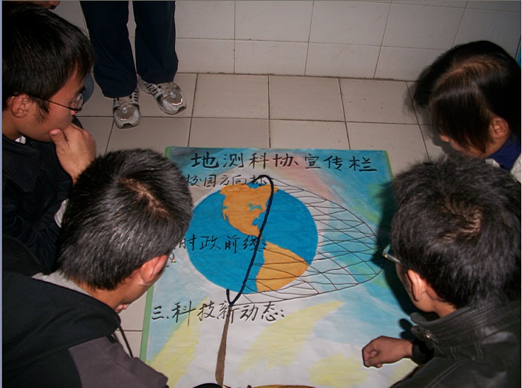 2010年11月9日,地测科协在男生宿舍11号楼下张贴以“太空和科技”为主题的宣传栏。