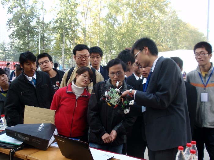 隆重的开幕式结束之后进入自由参展时间,我院飞思卡尔智能车一经展出便立即吸引了各个高校学生及领导的眼球,智能车部负责人李宗为广大师生进行了耐心讲解并做了现场演示。