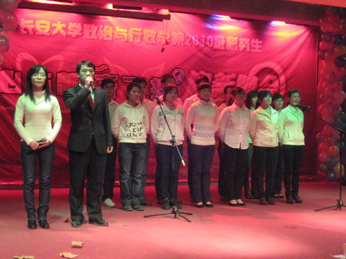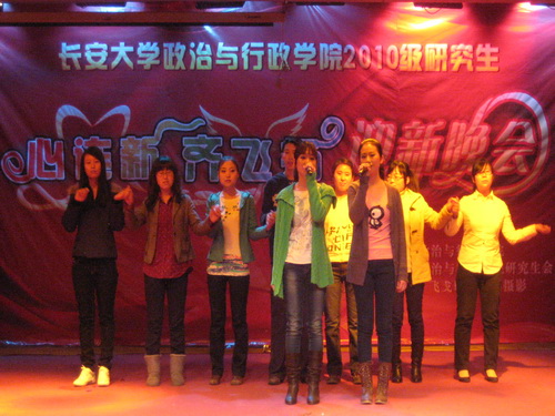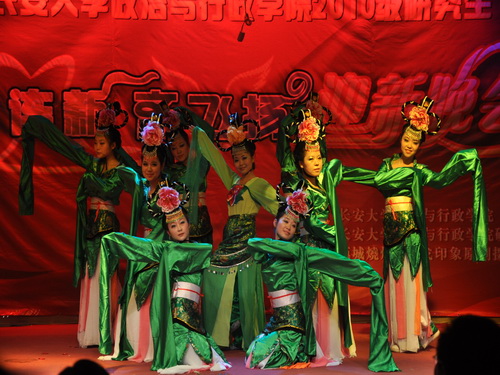 又到了老师们的精彩表演时间,深受同学们喜爱的戴生岐老师闪亮登场,一曲拿手的秦腔让全场气氛达到了顶点,庞嘉林老师深情的《忘情水》使得台下观众都为之深深陶醉。最后压轴登场的院研究生会的古典舞《长安寻梦》带着观众梦回大唐,重温那古老而震撼的辉煌年代。