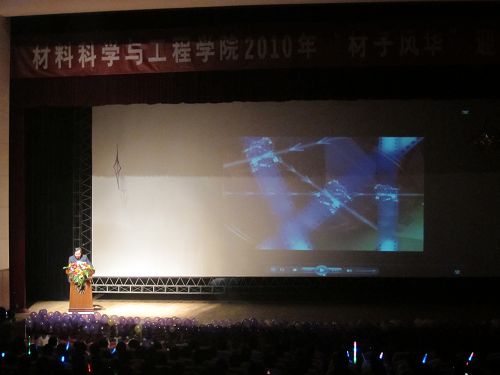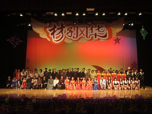 春华而秋实,在这硕果累累的时节,为迎接我院来自五湖四海的莘莘学子,同时给广大同学提供一个展现自我的舞台,11月12日晚7点,我院2010年“材子风华“迎新晚会于渭水校区朝晖大学生活动中心大礼堂成功拉开帷幕。校学工部副部长王冰老师、校团委副书记张侠老师和兄弟学院领导老师以及院党委书记王耀文老师、院长陈拴发老师、党委副书记高雁北老师以及各系主任和教师代表出席了本次晚会。